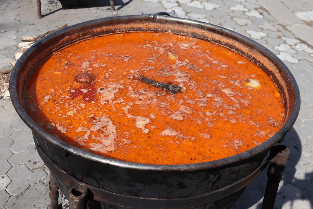 Борщ готовят и на самом празднике в большом казане на костре. Полакомиться им также могут все желающие.