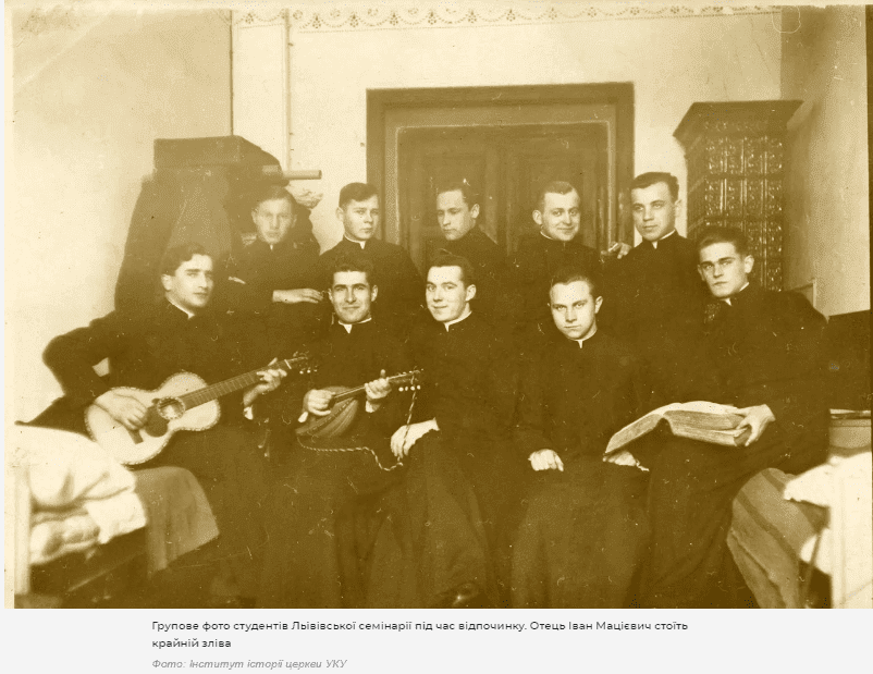 Священниками не народжуються. Ними стають. Іван Мацієвич народився він в селі Ушня, що за 12 км на північ від Золочева, що на Львівщині в 1910 р. Сім’я була велика. 5-ро дітей. Донька та 4-ро синів. Троє з них стали священниками. Його батько-священник помер у 38 років в результаті серцевого інфаркту в 1920 р., коли хлопцеві було 10 років. Але в даному випадку сім’я не залишилась наодинці із жорстоким життям. Допомагали родичі матері Людмили, а також митрополит Андрей Шептицький.