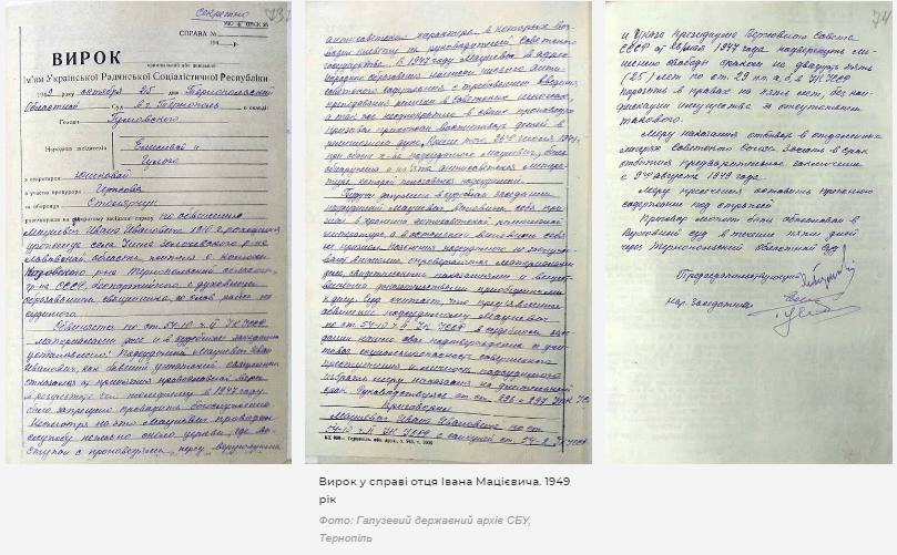 26 серпня 1949 р. помешкання священника обшукали, знайшли антирадянську літературу, опису майна не проводили, бо його в отця не було. Але на початку серпня його було заарештовано в ув’язнено в тернопільській в’язниці за антирадянщину. Іван Мацієвич не визнав себе винним, відмовився співпрацювати зі слідством, а тому був відправлений до Львівської психіатричної клініки на експертизу. Остання не виявила жодних відхилень. В жовтні цього року обласний суд визнав його винним в антирадянській пропаганді в засудив на 25 років ГУЛАГу. Відбував покарання в психлікарні Ярославської області.